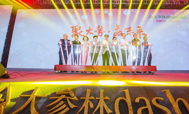 DB真人药业集团董事长刘景萍女士与大参林医药集团董事长柯云峰先生、中国医药商业协会执行会长付明仲女士等嘉宾共同开启了“聚大势•赢未来"大参林工商合作峰会的大幕。